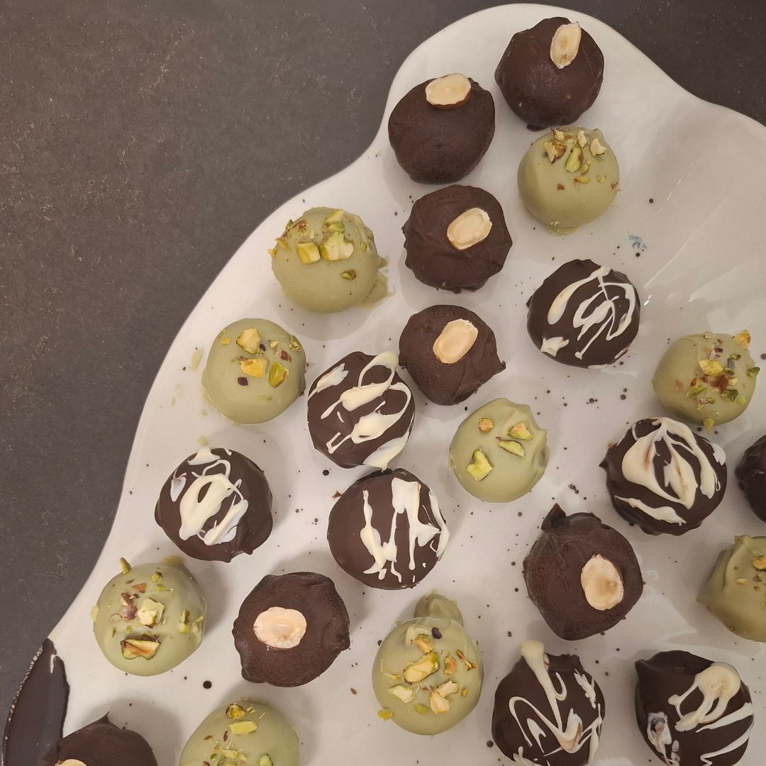✨ Pladenj prazničnih kroglic – tri vrste zdravih sladic + čokoladno-borovničeva torta brez slabe vesti